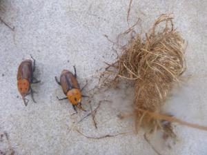 This beetle came to Ibiza few years ago. The larva eats from the vegetation points of palms (Arecaceae), chiefly of the species Phoenix canariensis, and makes the plants die. On Ibiza they attack primarily irrigated palms.